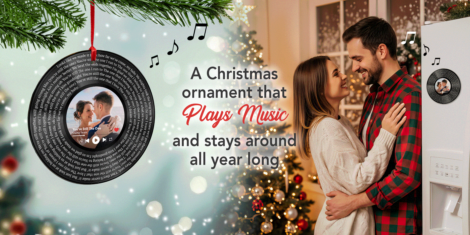 ✨ Personalized Music Christmas Ornament – Plays Your Song + Custom Photo + Built-In Magnets for Fridge Decoration After Christmas ✨